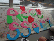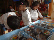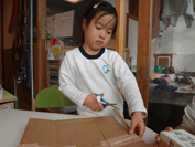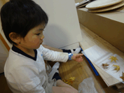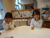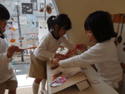 「看板もあったよね!」と作り始めました!みんなのこだわりは“Acce ssory”と英語で看板を作ること♪そして写真をじっくり見ながら、お店にあった物の雰囲気や形を忠実に再現していました。 |