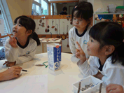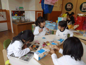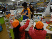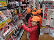 「本物のネックレス屋さんには鏡があったよね!」ということで、ネックレス屋さんをオープンするのに必要な物を買いに出掛けたみんな♪ 鏡の他にも、ネックレスをたくさん作るためにテグスやおしゃれなコースターを買いました☆これからどのようにアクセサリー屋さんの環境が変化していくのか楽しみです(*^_^*) |