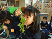 | 毎日の食材に気軽にふれられるように展示したり、食材の持つ栄養素等を日々掲示していく中で、食の大切さを実感していきます。 | ||