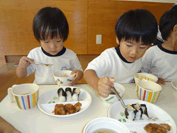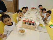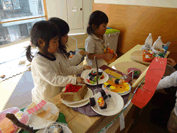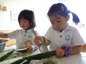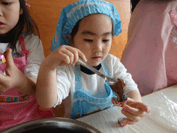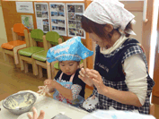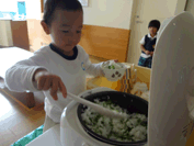 | 子どもの日々のつぶやきや、身の回りから受ける様々な食に関する情報に刺激を受けながら、日々の生活の中で、食事やおやつ作りを楽しみます。 | ||