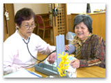 看護師により、入浴前に血圧や体温を測定し、健康チェックを行います。 |